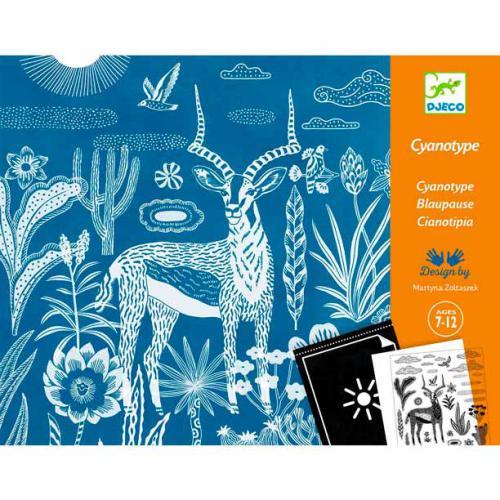 Esta atividade mágica baseia-se num processo fotográfico: a cianotipia. Utilizando padrões ópticos, é possível criares desenhos em papel fotossensível. Quando exposto à luz solar, é produzido um negativo dos padrões no papel. Depois, basta passares por água e ver como o desenho aparece no fundo azul! Estas criações são os cenários noturnos que servem de fundo aos 4 quadros poéticos e às tuas ilustrações.