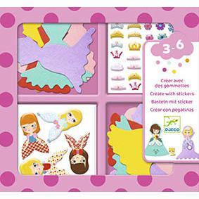 Uma atividade de colagem para criares bonitas princesas autocolantes. Escolhes uma silhueta de princesa em feltro e decoras livremente com autocolantes em volume. Divertes-te a criar princesas que podes colar onde quiseres. Autocolantes com diferentes texturas. Peças em volume fáceis de agarrar.