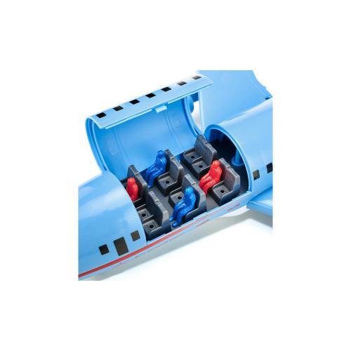 Em terra, no mar e no ar: o novo avião comercial da siku amplia o mundo SIKUWORLD com mais um tema de jogo. O grande avião de 38,5 cm com dois motores está pronto para embarque no voo SW 5402. A tripulação levanta a escotilha no teto para reorganizar os passageiros e a porta traseira revela espaço para transportar um carro de férias. O avião pode descolar, recolher o trem de aterragem e voltar a aterrar com luzes de aproximação. Após a aterragem, um veículo “follow-me” com luzes guia o avião até ao estacionamento, onde é rebocado para a posição final.