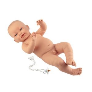 Boneco com 45 cm. Corpo em vinil. Braços e pernas articulados. Anatomicamente correto. Chupeta incluída. Feito à mão em Espanha.