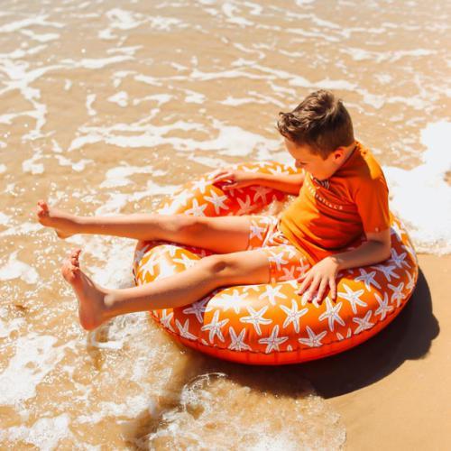 Um essencial de verão da Swim Essentials, perfeito para tornar os dias de piscina mais calmos e elegantes. O tom bege suave com padrão de estrelas-do-mar cria um visual sereno e inspirado no mar. Leve e resistente, é ideal para crianças a partir dos 6 anos. Perfeito para flutuar, relaxar e aproveitar o verão com estilo.