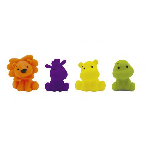 Os aspersores são pequenos brinquedos de banho simples com cores bonitas e várias personagens. Eles flutuam e cada um deles tem um buraco para esguichar água. Feito de plástico macio e resistente para massajar as gengivas dos bebés que adoram mordê-los. O bebé poderá travar divertidas batalhas aquáticas com os 4 simpáticos animais! Limpe bem as ventosas antes de as fixar numa superfície limpa e lisa. Material: 100% PVC. Retire a água de dentro dos brinquedos após o uso e enxague. Lave com água limpa regularmente. Em conformidade com os regulamentos, todos os materiais plásticos flexíveis são livres de ftalatos.