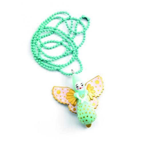 Colar adorável. Bonequinho de plástico (altura: 3,5 cm). Corrente de metal pintada, com 55 cm. Tem fecho.