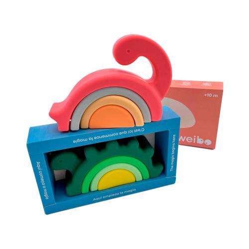 Este original brinquedo de empilhar em forma de dinossauro é perfeito para os mais pequenos se divertirem com as suas construções e criações. Pode servir de mordedor, acalmando os mais pequenos durante o processo de dentição. Inclui 4 peças. Idade recomendada: A partir dos 10 meses
