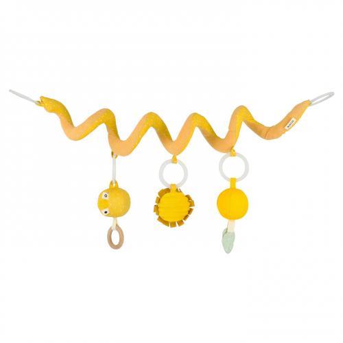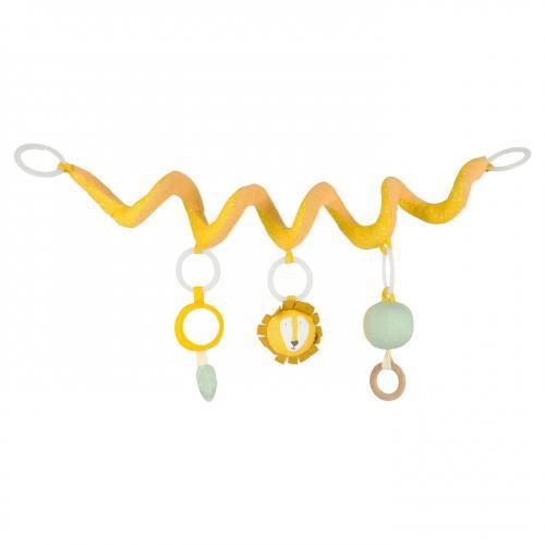 Com três elementos lúdicos para descobrir, esta espiral de atividades coloca um sorriso no rosto de cada pequeno! A espiral enrola-se bem em torno de qualquer porta-bebés ou parque de atividades. Os três brinquedos têm características diferentes, como um anel de madeira, papel enrugado, um espelho e um sininho para o seu filho brincar onde quer que vá. Como todos os elementos são fixos com anéis de brinquedo práticos, eles podem ser facilmente retirados para continuar a diversão fora do porta-bebés ou do parque de atividades.