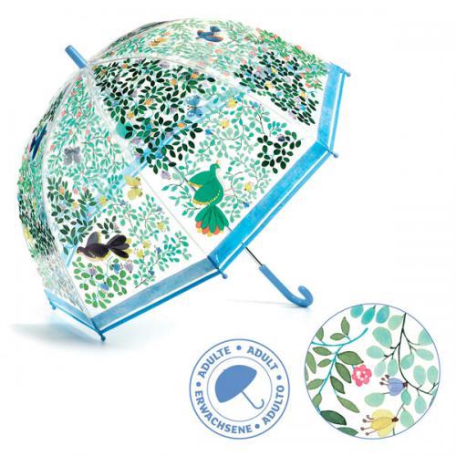 Um guarda-chuva adulto, chique e prático, ilustrado com pássaros encantadores num ambiente primaveril. O seu desenho transparente permite que o utilizador veja para onde vai e a sua abertura manual com sistema de protecção permite abrir e fechar sem prender os dedos. Um acessório colorido, ideal para alegrar os passeios na chuva!