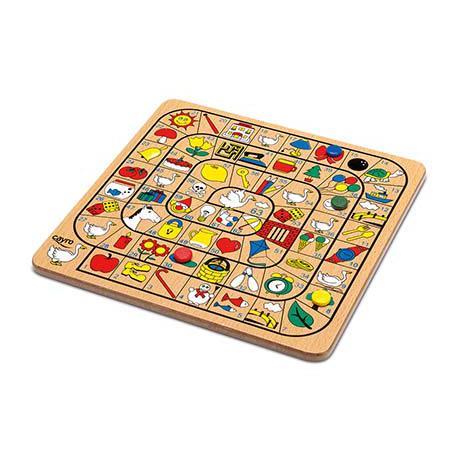 Podes jogar ao parchís e ao jogo da glória nesta mesma caixa e, depois, guardar todas as peças no seu interior.