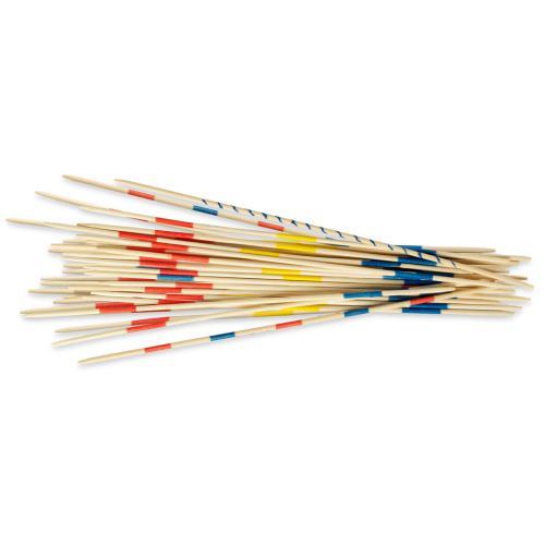 Pega nos palitos num monte e deixa-os cair sobre a mesa. Por turnos, vai retirando os palitos sem mexer nos restantes.