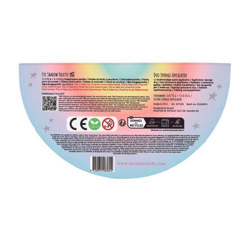 Paleta com 10 sombras de olhos. ATENÇÃO: Não adequado para crianças com menos de 3 anos. Perigo de asfixia por ingestão de peças pequenas.