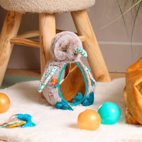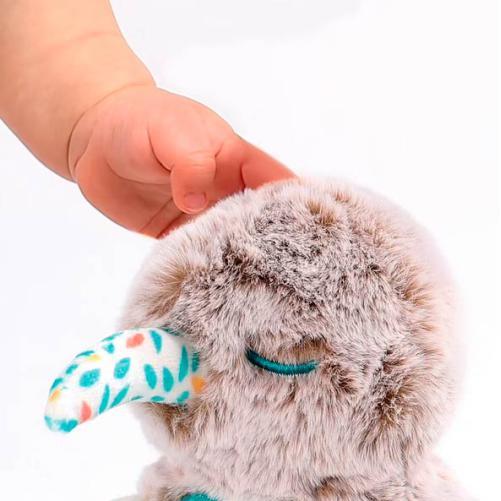 Um peluche fofinho com um espelho para a autodescoberta e um elemento sonoro para estimular os sentidos. Pesado para brincadeiras estáveis. 20 cm. Desde o nascimento.