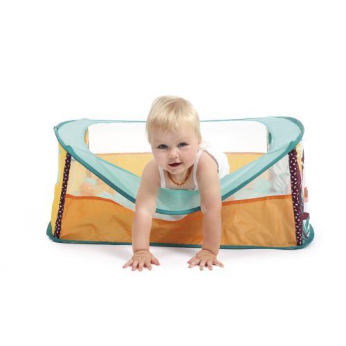 Pronto em dois passos e um movimento! A piscina de bolas com o tema da selva delimita um espaço para os bebés, onde podem brincar com as 40 bolas coloridas ou com os seus brinquedos preferidos e passar as bolas e as mãos pelos 3 furos. A piscina de bolas pode ser transportada para qualquer lugar. A sua estrutura pop-up e os 4 tubos, leves e flexíveis, são muito fáceis de instalar ou dobrar. Num piscar de olhos, pode guardá-la facilmente no saco de transporte. Para crianças que conseguem gatinhar, recomendamos a supervisão dos pais, porque as paredes flexíveis não serão capazes de retê-las. Adequado para crianças com mais de 6 meses. Dimensão: 80x80x30cm. Inclui 40 bolas coloridas com 6 cm de diâmetro e 1 saco de transporte. Limpeza com um pano húmido.