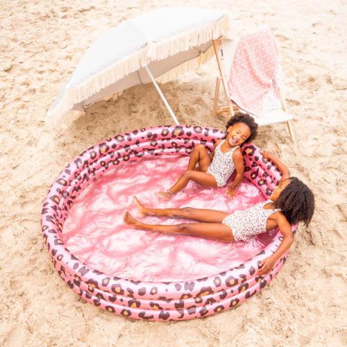 A piscina infantil Safari Chic Rose Gold da Swim Essentials traz um visual elegante e divertido para os dias de verão. O padrão leopardo em tons rosa dourado dá um toque moderno ao jardim. Foi pensada para crianças pequenas, oferecendo um espaço seguro e agradável para brincar, refrescar-se e aproveitar o calor.