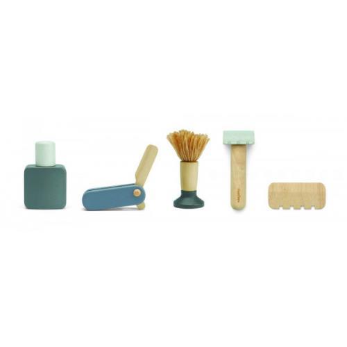 Alegrem as rotinas matinais com o set de barbeiro. Completo com um necessaire, gillette, lâmina de barbear, afiador, pente de barbear, almofariz, espelho, pente e aftershave. Este brinquedo é perfeito para brincar de fingir e imitar o pai.