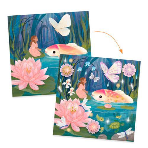 Decora todos os quadros com decalques, flores de papel, cristais autocolantes e padrões para decorar com papel de alumínio. 4 vezes mais actividades para um resultado 4 vezes mais impressionante!