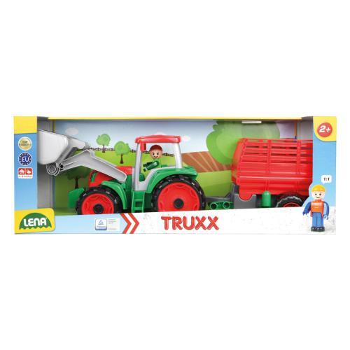 Eixos de aço galvanizado. Cabine do condutor pode ser aberta para brincar. Pá bloqueável com alça. Inclui reboque de feno. Acompanha figura de brincar LENA®. Comprimento: 55 cm. Idade recomendada: 2 anos ou mais. Unidade: 8 peças; caixa aberta: 530 x 160 x 195 mm.