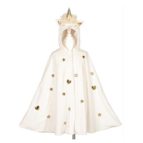 Quando colocas esta capa mágica, transformas-te num unicórnio voador por um dia! Vais voar com os teus amigos entre as árvores! A capa de unicórnio em branco-pérola é feita de 100% poliéster. O comprimento da capa é de 66 cm (4-8 anos).